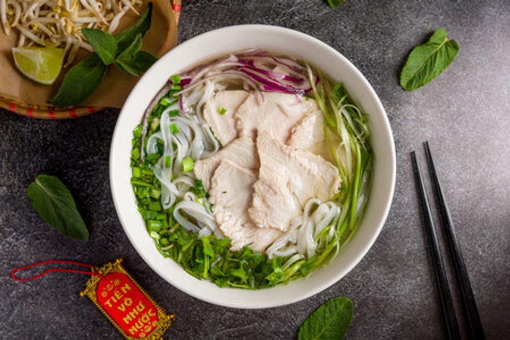 Классический вьетнамский суп на основе говяжьего бульона с рисовой лапшой и тонко нарезанным мясом